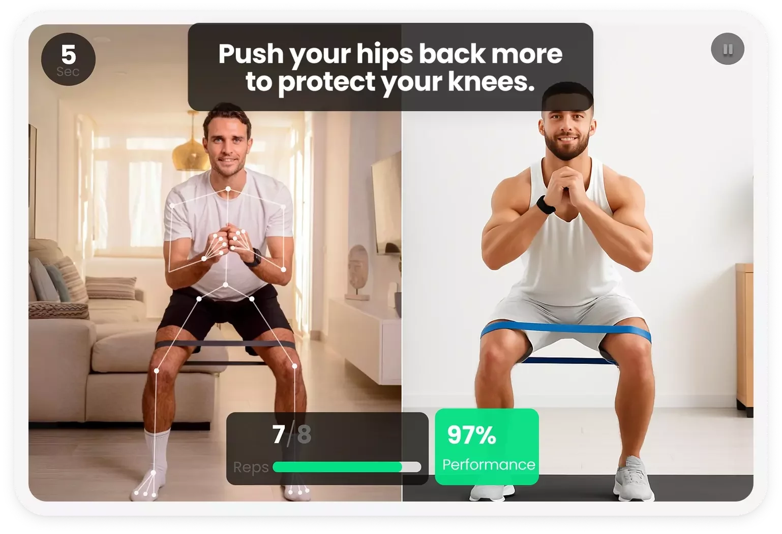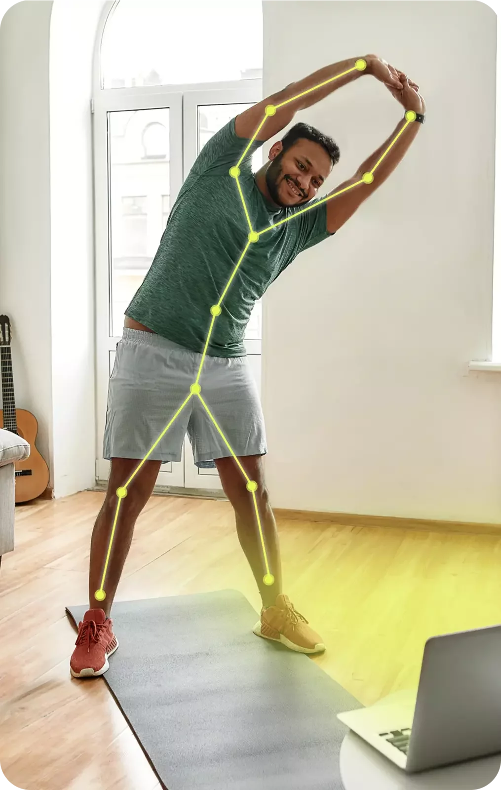 Patients follow exercises at home guided by audio/visual real-time feedback, movement tracking and progress scoring.