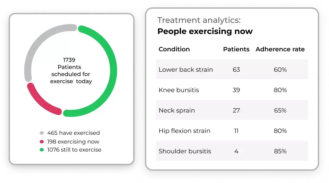 Physios remotely review recovery using skeletal replay and clinical dashboards adjusting plans when needed